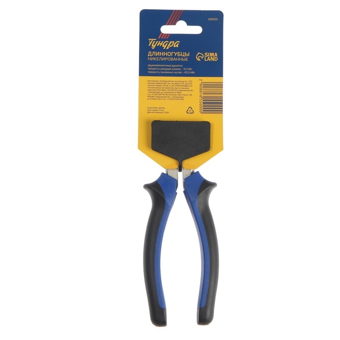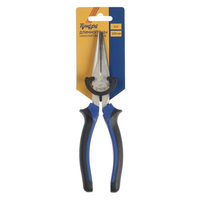 Длинногубцы ТУНДРА, CrV, никелированные, двухкомпонентные рукоятки, 200 мм