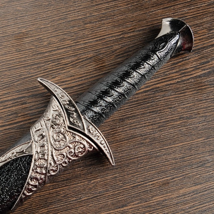 Сувенирный меч "Жало", лезвие с изгибом на ножнах витые узоры, чёрный/серебро, 28см