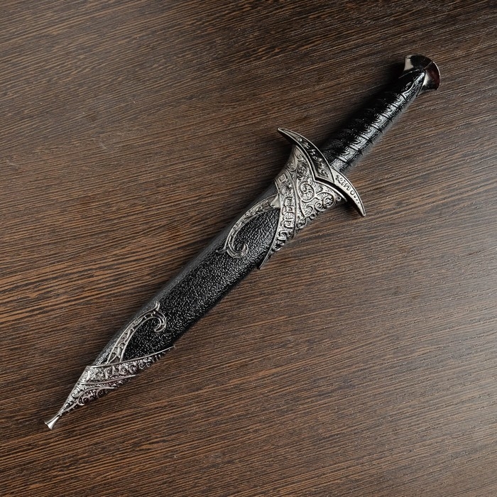 Многие мужчины вместо банальных безделушек предпочитают получить в подарок атрибут, воплощающий их силу, мужество и отвагу. В этом случае оригинальным и необычном подарком может стать сувенирный меч "Жало", лезвие с изгибом на ножнах витые узоры, чёрный/серебро, 28см.