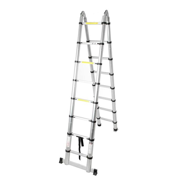 Стремянка-лестница телескопическая ТУНДРА, раскладная, алюминиевая, 2.2 х 2.2 м