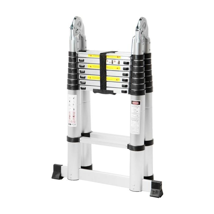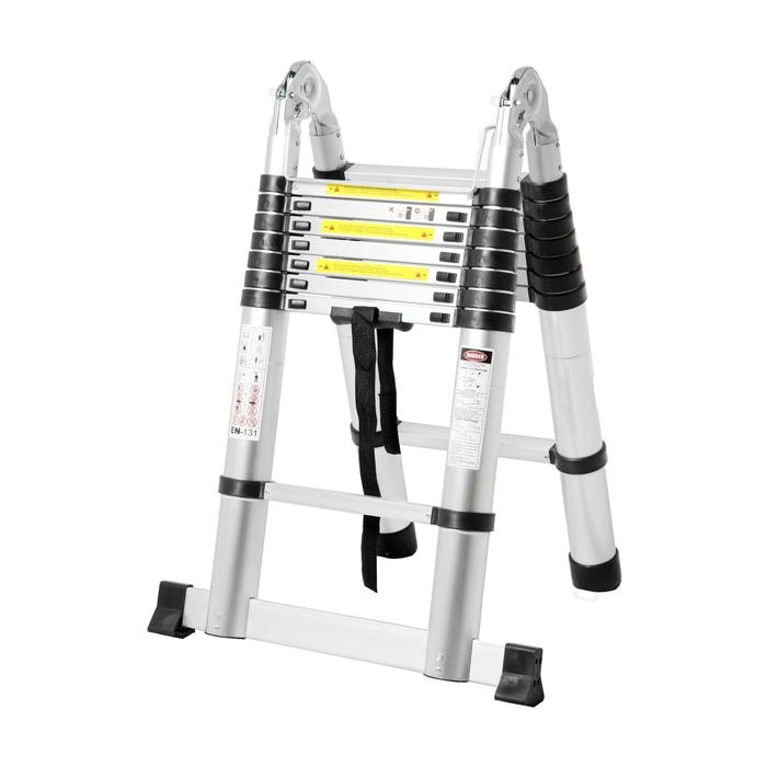 Стремянка-лестница телескопическая ТУНДРА, раскладная, алюминиевая, 2.5 х 2.5 м
