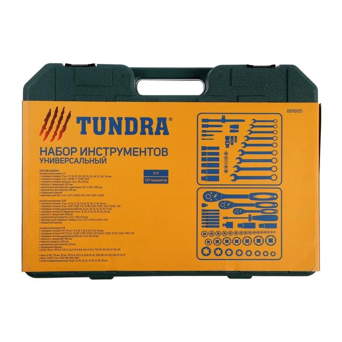 Набор инструментов в кейсе ТУНДРА, автомобильный, CrV, 1/2", 1/4", 3/8", 137 предметов
