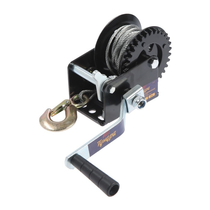 Лебедка ручная барабанная тяговая ТУНДРА, 1400 кг, металлический трос 10 метров