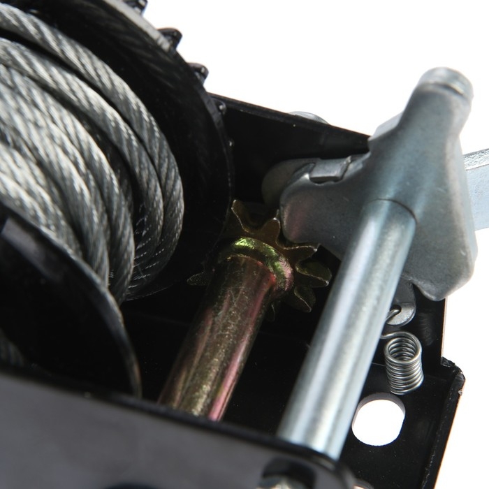 Барабанная лебёдка проста в эксплуатации: её конструкция, в основе которой барабан, крепится к прочному горизонтальному упору, а трос — к грузу. Вращая ручку, вы можете подтянуть необходимый объект.