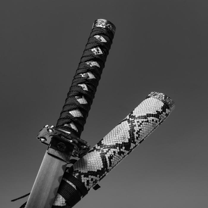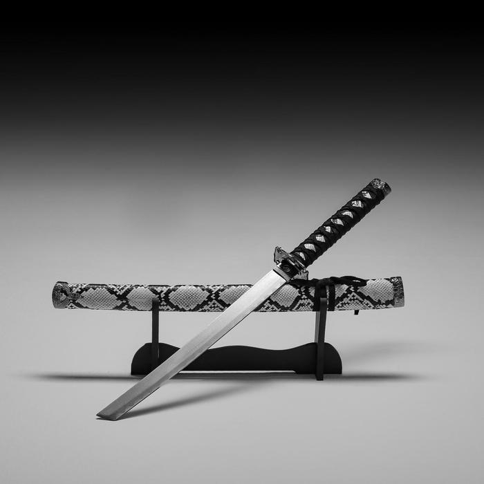 Сувенирное оружие «Катана на подставке», серые ножны под змеиную кожу, 70 см