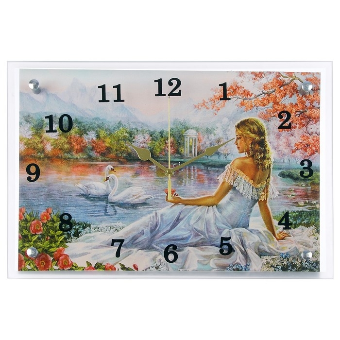 Часы-картина настенные, интерьерные "Девушка и лебеди", бесшумные, 25 х 35 см