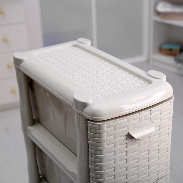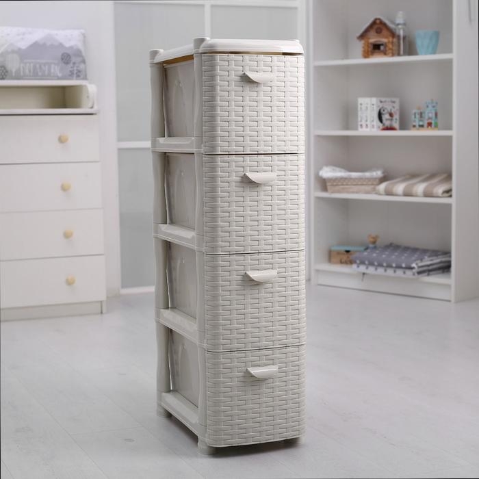 Комод узкий 4-х секционный «Ротанг», цвет белый