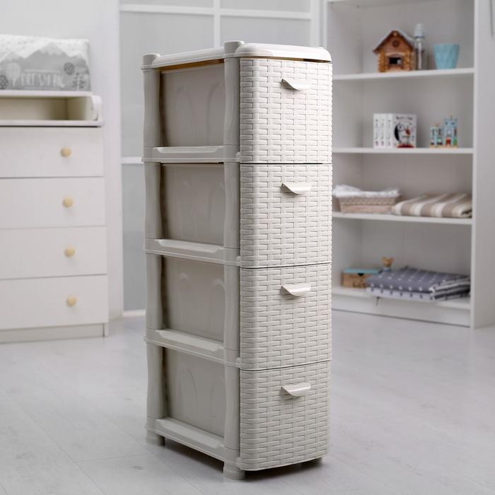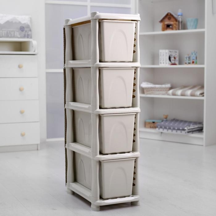 Комод 4-х секционный «Плетёнка», цвет слоновая кость