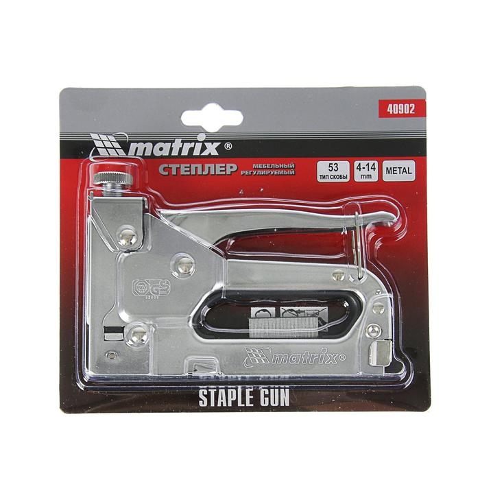 Степлер мебельный MATRIX, 4-14 мм, тип скоб 53, металлический корпус, регулируемый