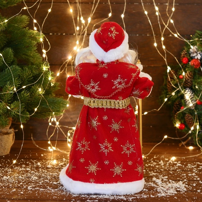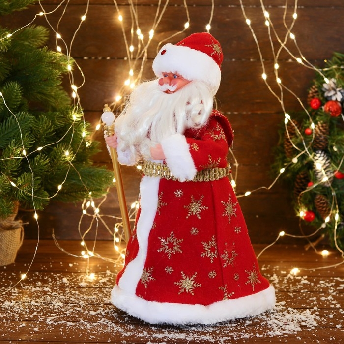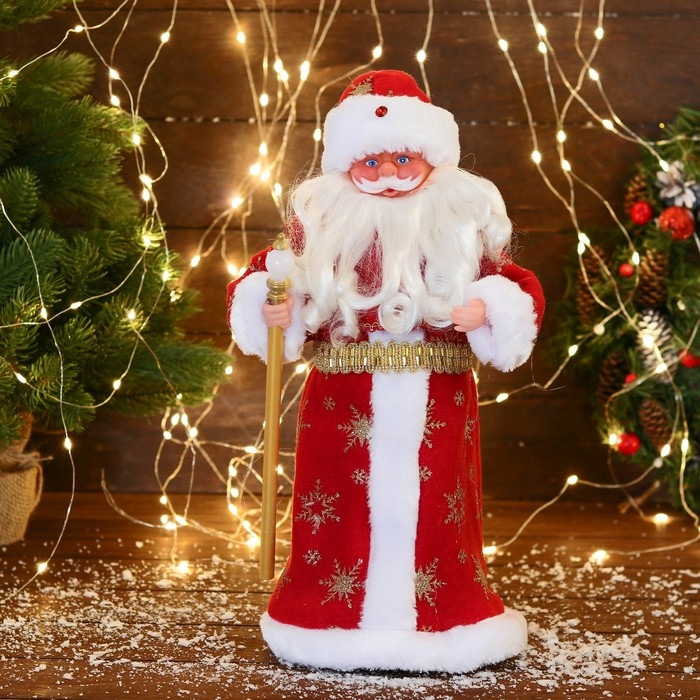 Дед Мороз "Красная шуба, с посохом" 39 см, двигается, красный