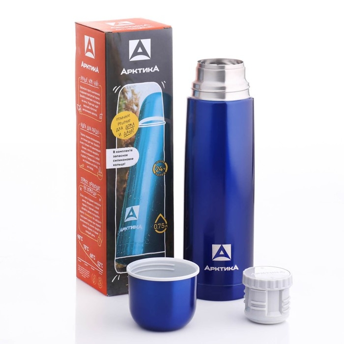 Термос "Арктика", 102, 750 мл, сохраняет тепло 24 ч, синий отличное решение для пикника, прогулки на свежем воздухе или более длительного путешествия. Такая модель разработана специально для динамичных людей, знающих толк в проведении времени с пользой.