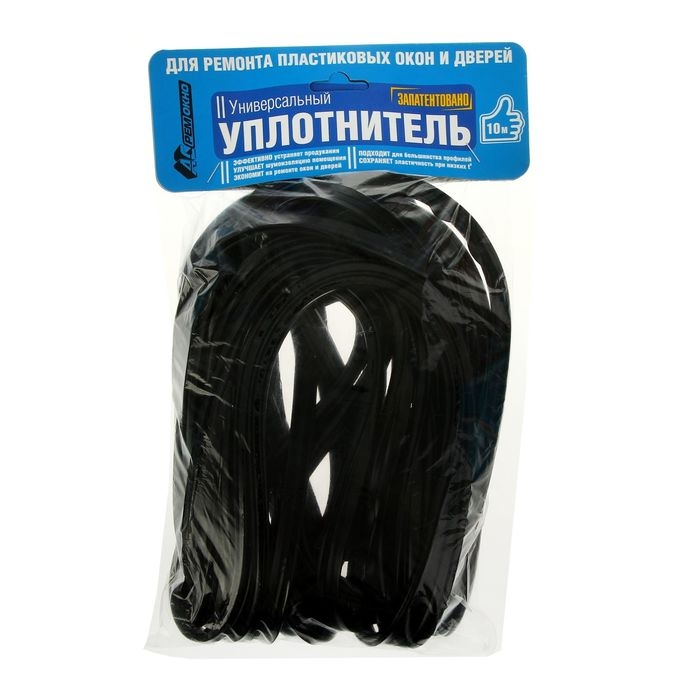 Уплотнитель универсальный для пластиковых окон, L=10 м, черный