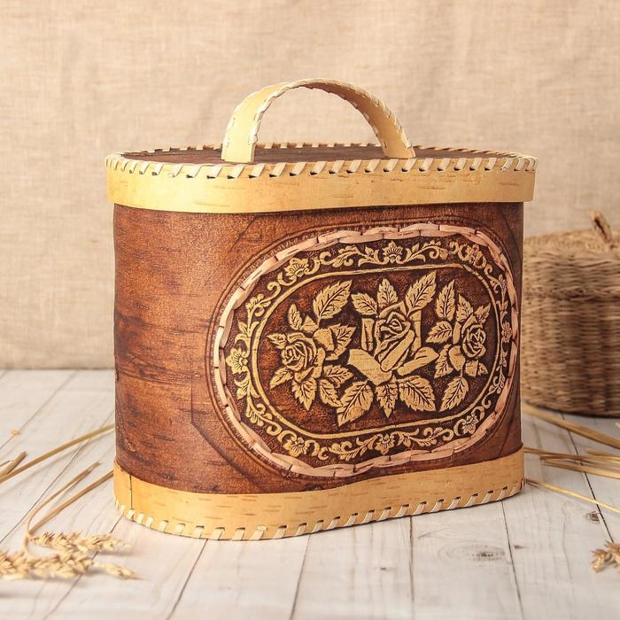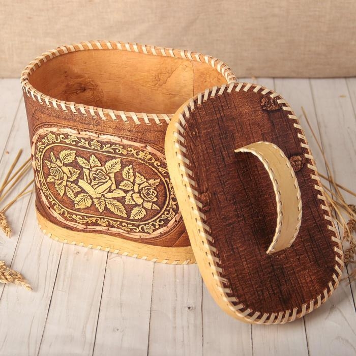 Хлебница «Розы», на 2 булки, 25×16×20 см, береста