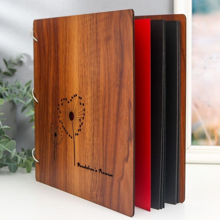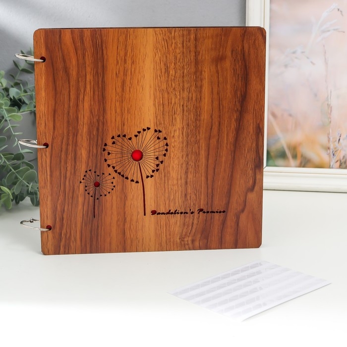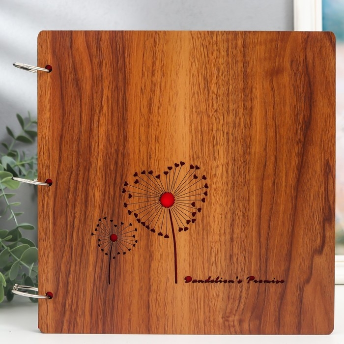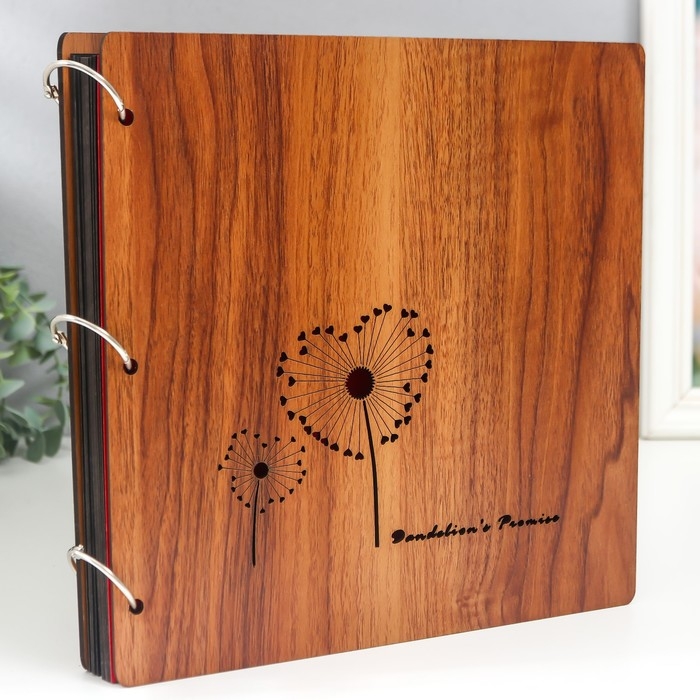 Фотоальбом 30 листов "Сердечные одуванчики" (уголки+кольца) 26х26х2 см