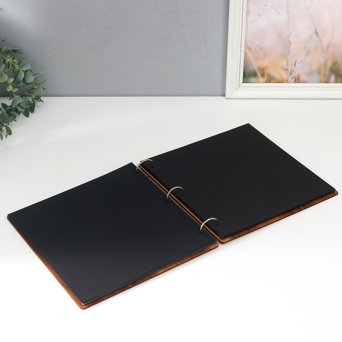 Фотоальбом 30 чёрных листов "Крафт" на кольцах, малый, плотность 350 гр 17х22 см