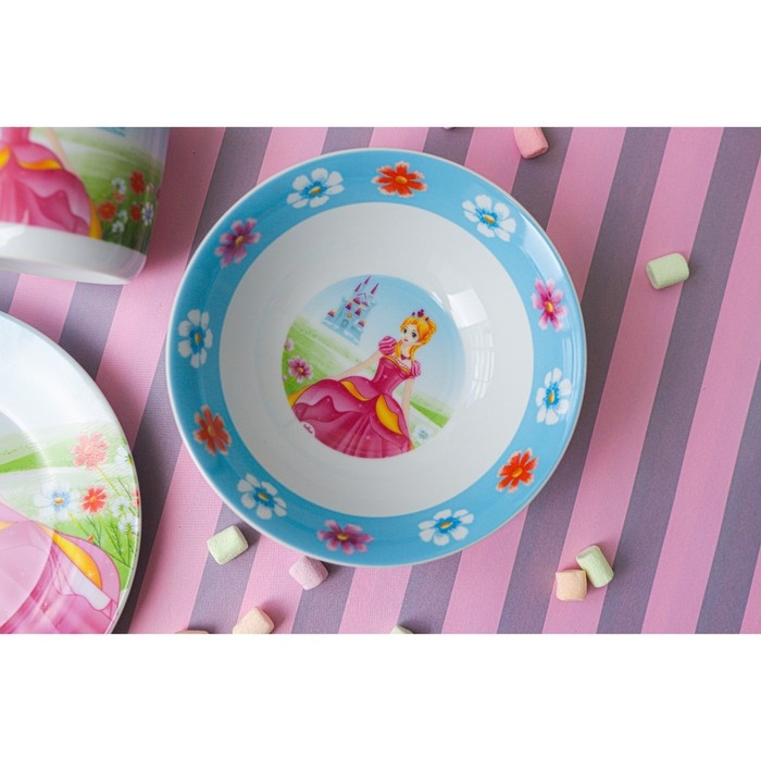 Набор детской посуды из керамики Доляна «Волшебница», 3 предмета: кружка 230 мл, миска 400 мл, тарелка d=18 см, цвет белый