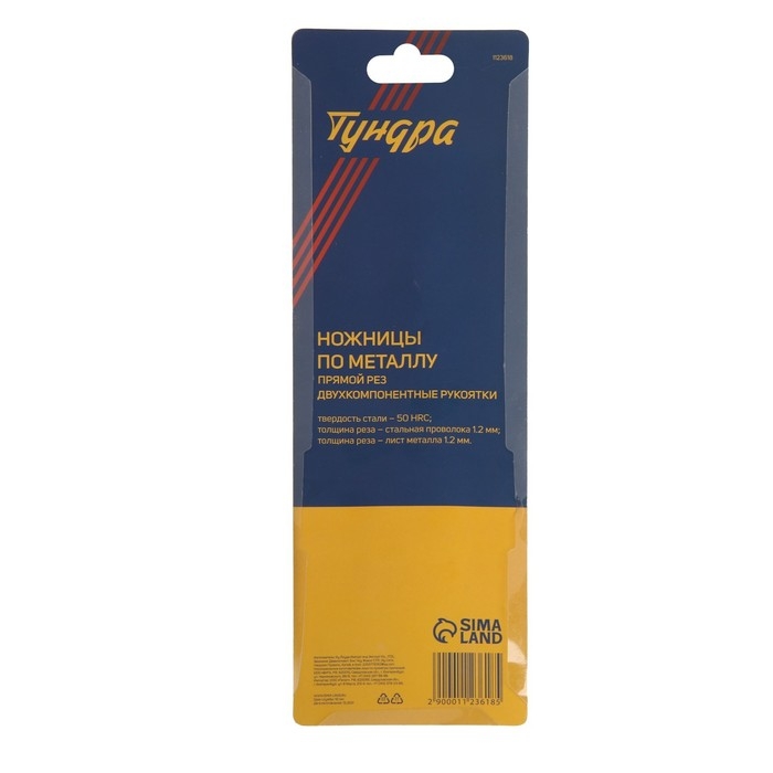 Ножницы по металлу ТУНДРА, 2К рукоятки, прямой рез, 250 мм