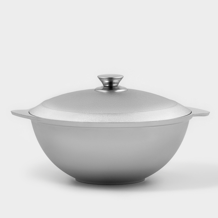 Казан для плова, 3,5 л, алюминиевая крышка, литые ручки, цвет серебряный