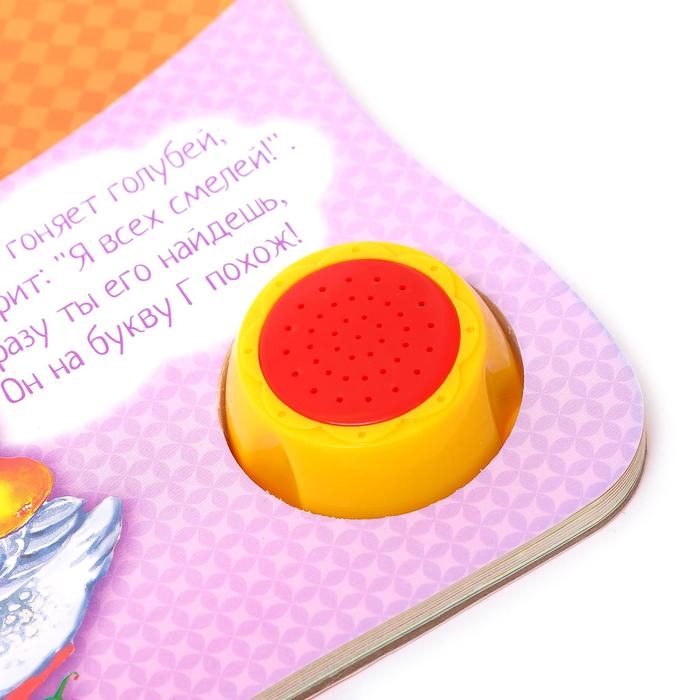 На каждой странице малыш увидит животное, название которого начинается с определенной буквы, прочитает забавную историю в стихах, а затем послушает задорную песенку про алфавит.