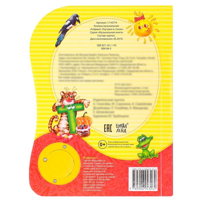 Музыкальная книга «Алфавит. Изучаем в стихах», 20 стр., озвучка - весёлая песенка
