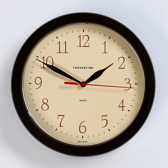 Часы настенные, серия: Классика, d-24 см, коричневый обод