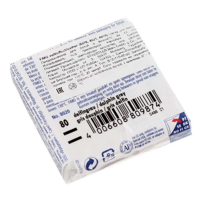 Полимерная глина FIMO подходит для начинающих мастеров и професиональных художников.ОсобенностиМасса мягкая, поэтому вы легко придадите ей нужную форму.Цвета можно смешивать для получения необходимых оттенков, которые сохранятся после обжига.После запекания изделия становятся прочными и долговечными.Упаковка легко открывается без использования ножа. Если вы не полностью израсходовали блок, то остатки можно завернуть в упаковку — так глина лучше сохранится.Термическая обработка. Готовое изделие поместите внутрь духовки на тарелке, стекле или фольге. Температура обжига не должна пpeвышaть 130 °С.Пластика рекомендована для детей старше 8 лет.