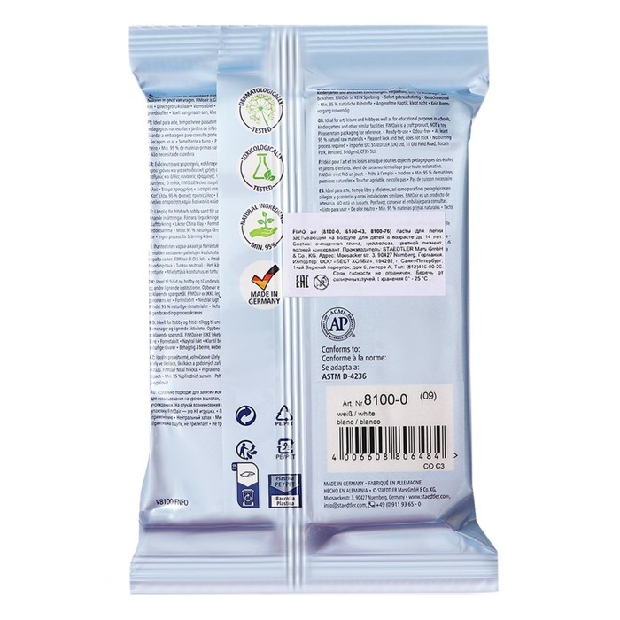 Глина FIMO air basic на 97 % состоит из натуральных веществ, не требует обжига. Подходит для детского творчества