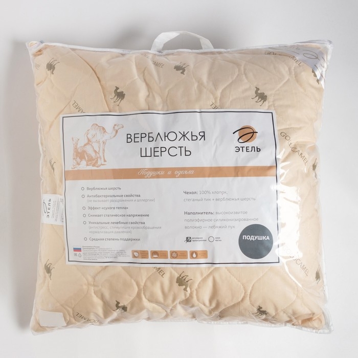 Подушка состоит из наполнителя из верблюжьей шерсти и нежнейшего лебяжьего пуха. Подушка не только обеспечивает правильное положение тела ночью, но и: