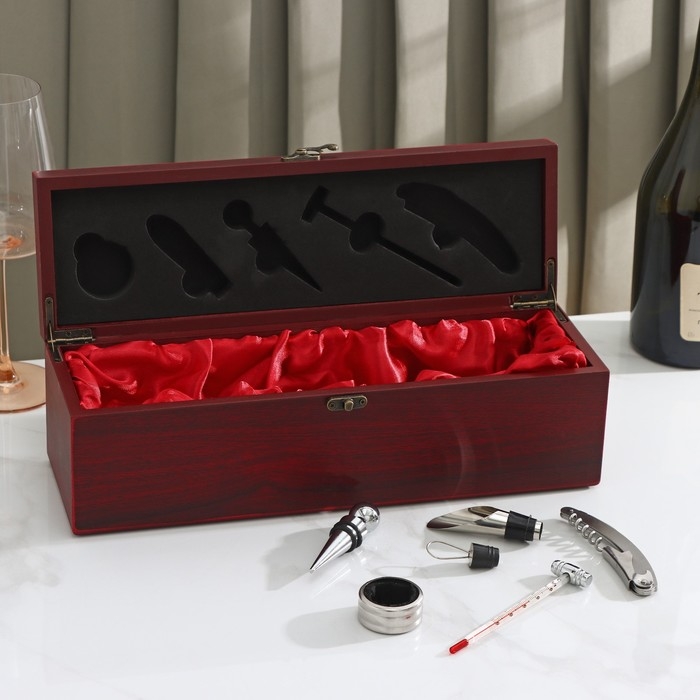 Набор для вина Доляна, 6 предметов: кейс для бутылки, каплеуловитель, штопор, пробка, кольцо, нож для фольги