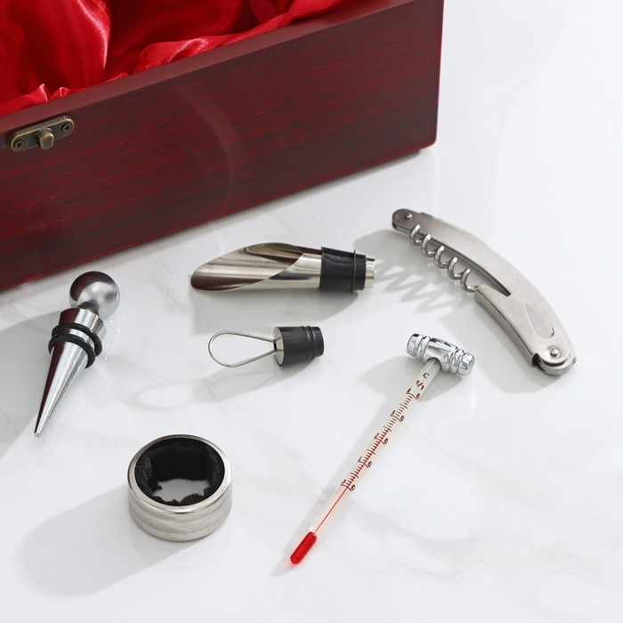 Набор для вина Доляна «Ла-Манш», 6 предметов: кейс для бутылки, каплеуловитель, кольцо, штопор, термометр, пробка