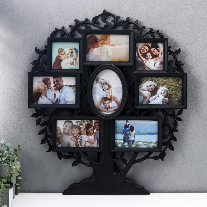 Фоторамка на 8 фото 10х10, 10х15 см "Семейное древо" чёрная 60х50х2 см