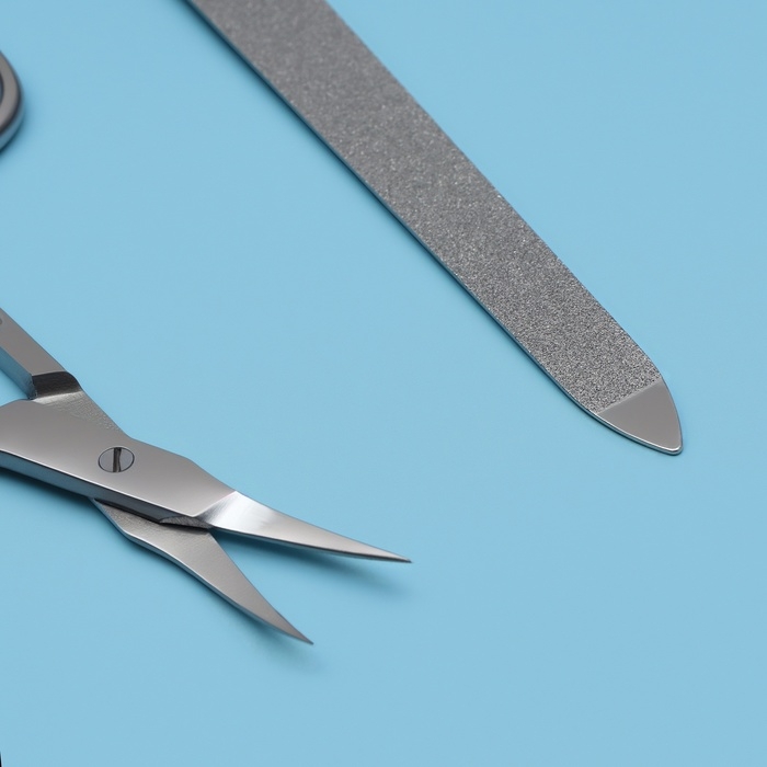 Набор маникюрный «С ЗАБОТОЙ», 6 предметов, в футляре, в PVC - коробке, цвет серый