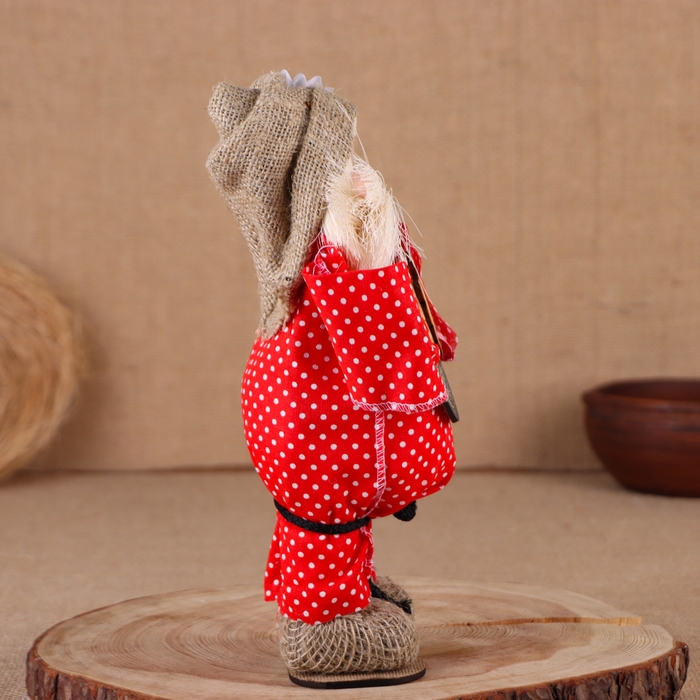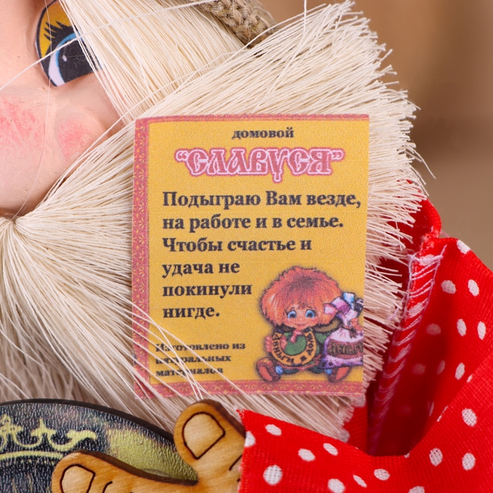 Оберег-домовой "Славуся в льняном колпаке, с ложкой и подковой", микс