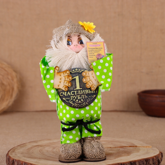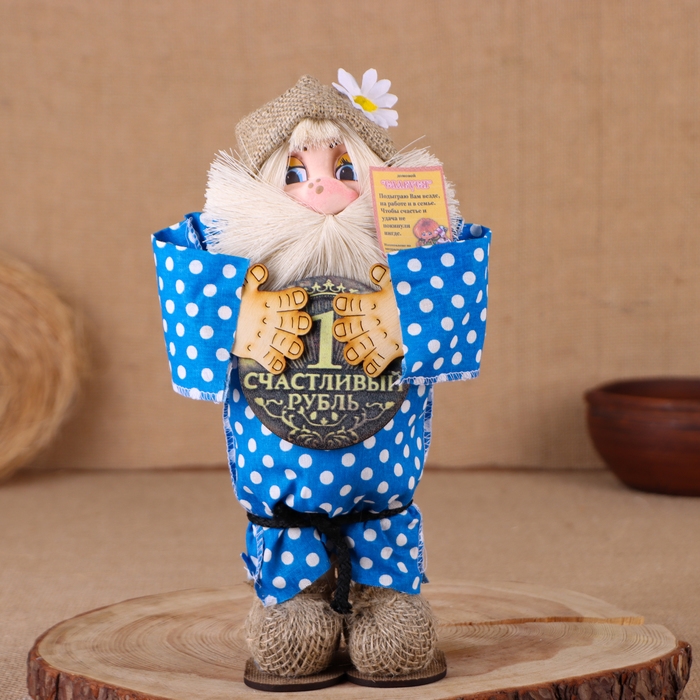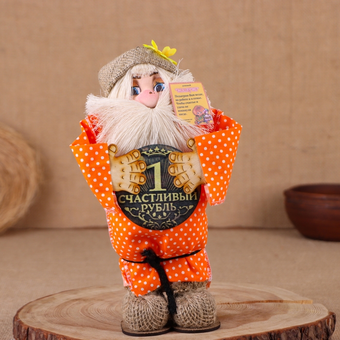 Оберег-домовой "Славуся в льняном колпаке, с рублём", МИКС
