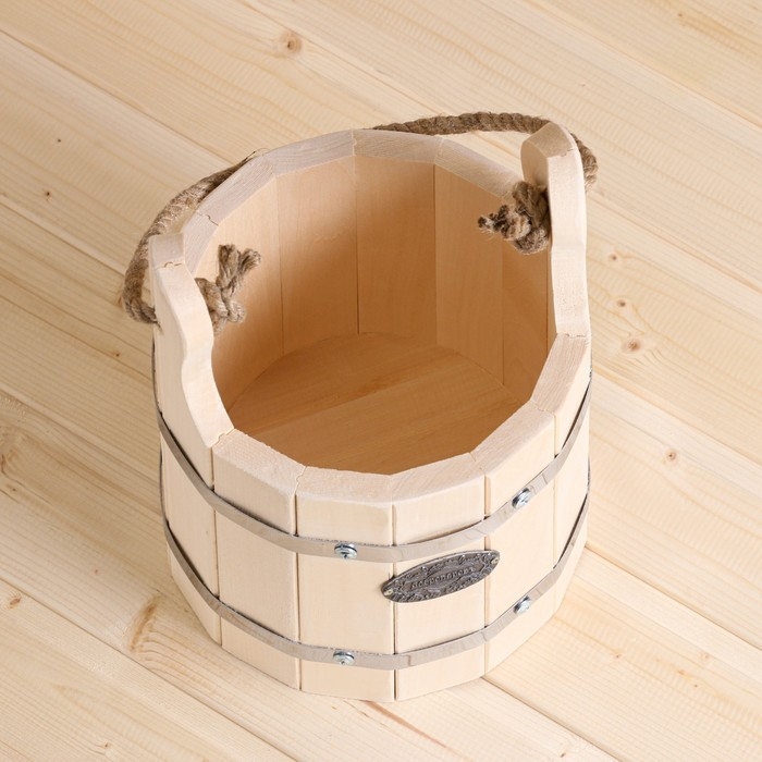 Ведро из липы, 7л, оцинкованная вставка, ручка-веревка, "Добропаровъ"