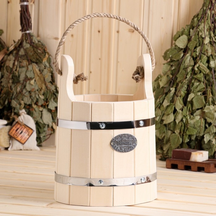 Ведро-запарник из липы, 5 л, "Емеля", нержавеющий обруч, ручка-веревка, "Добропаровъ"