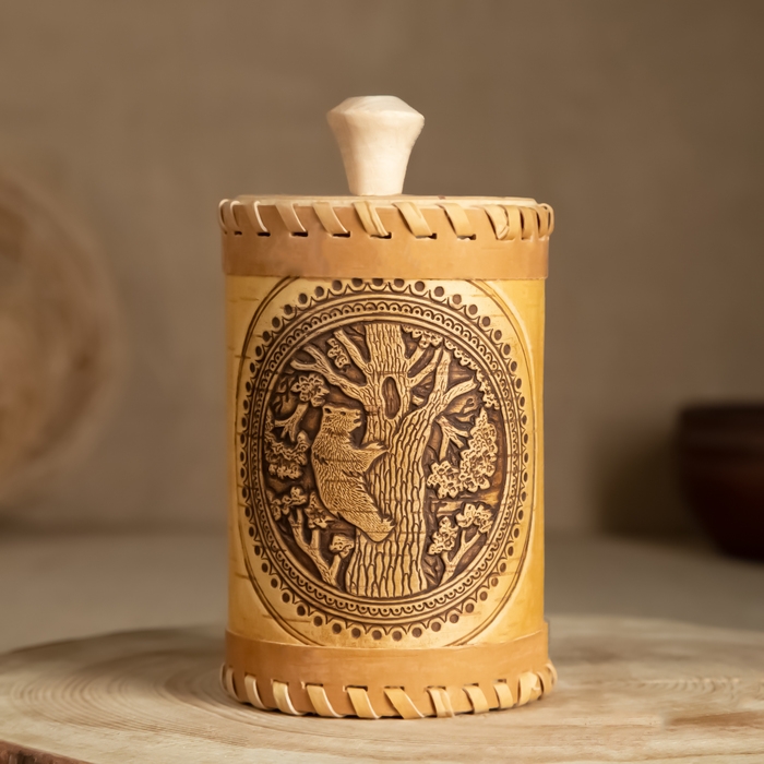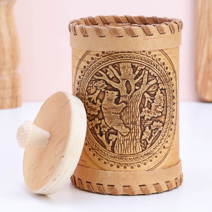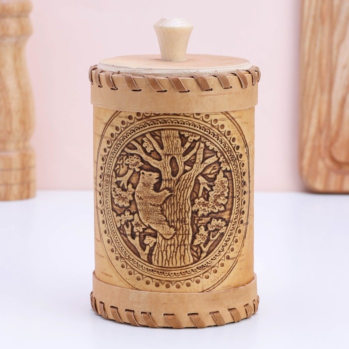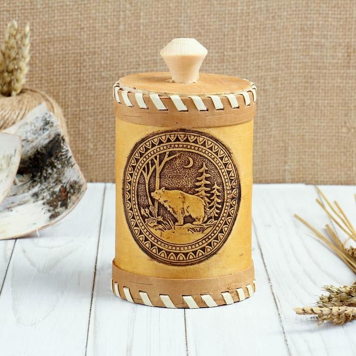Туес «Медведь», 8×8×12, береста
