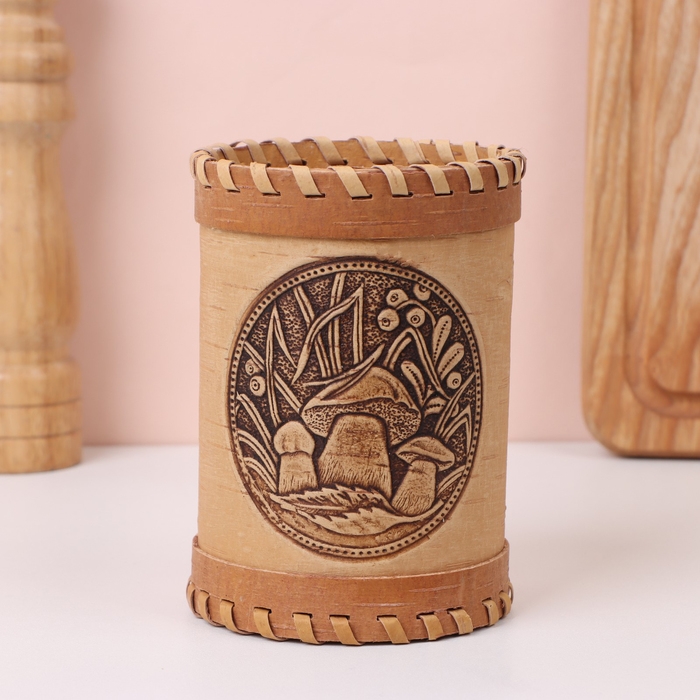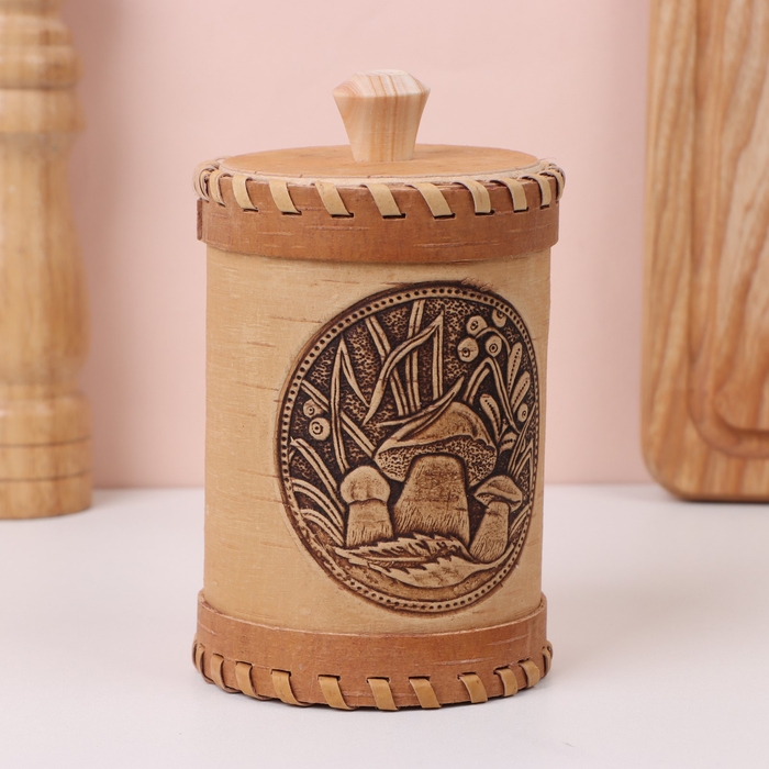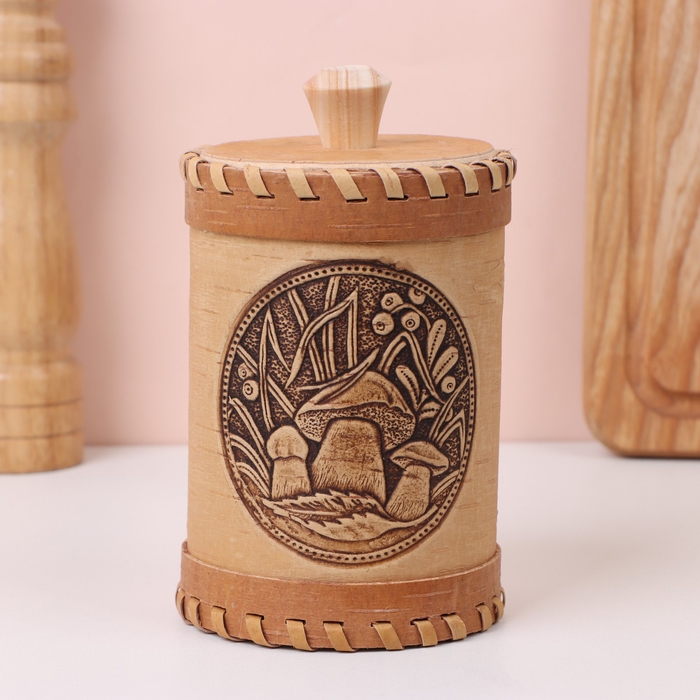 Туес «Грибочки», 8×8×14 см, береста