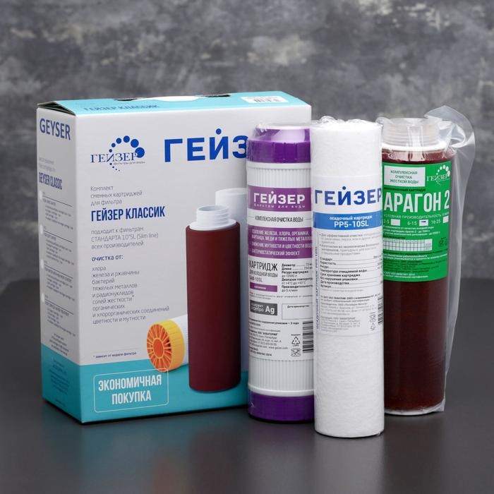 Набор содержит в себе всё необходимое для поддержания высокого уровня комплексной очистки воды в фильтрах «Гейзер Классик».