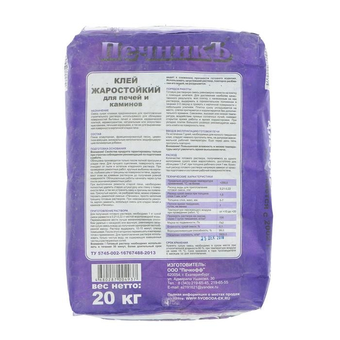 Клей жаростойкий для печей и каминов "Печникъ" 20,0 кг