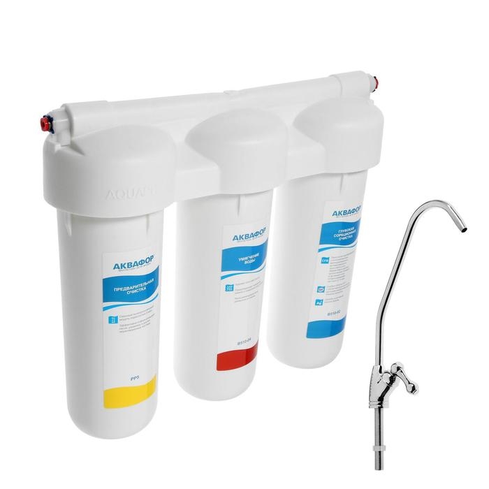 Система для фильтрации воды "Аквафор" Трио норма, РР5/В510-04/В510-02, умягчающий, 3-х ступенчатый, с краном, 1.5 л/мин