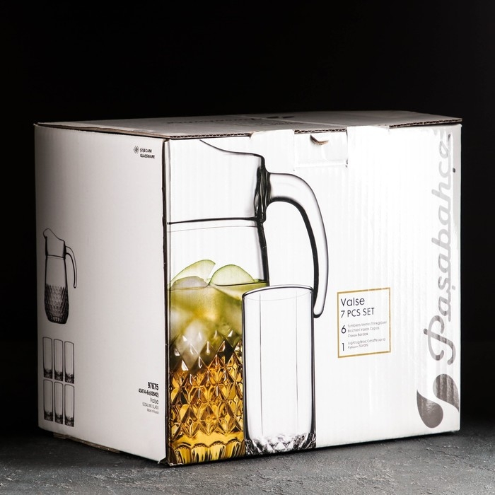 Набор питьевой стеклянный Valse, кувшин 1,3 л, стаканы 290 мл, 6 шт