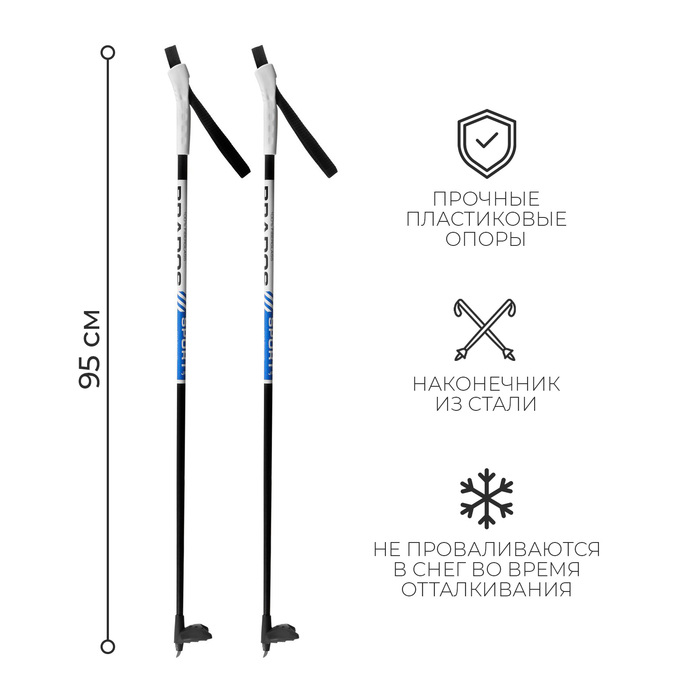 Палки лыжные стеклопластиковые, длина 95 см, цвета МИКС