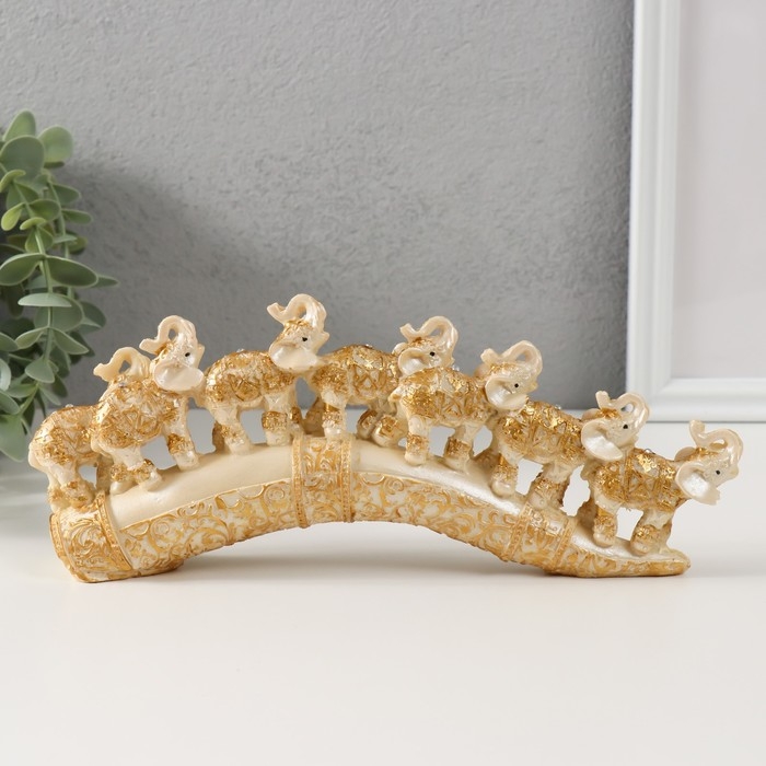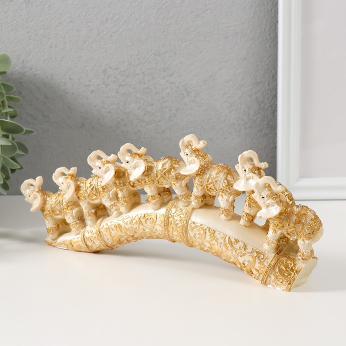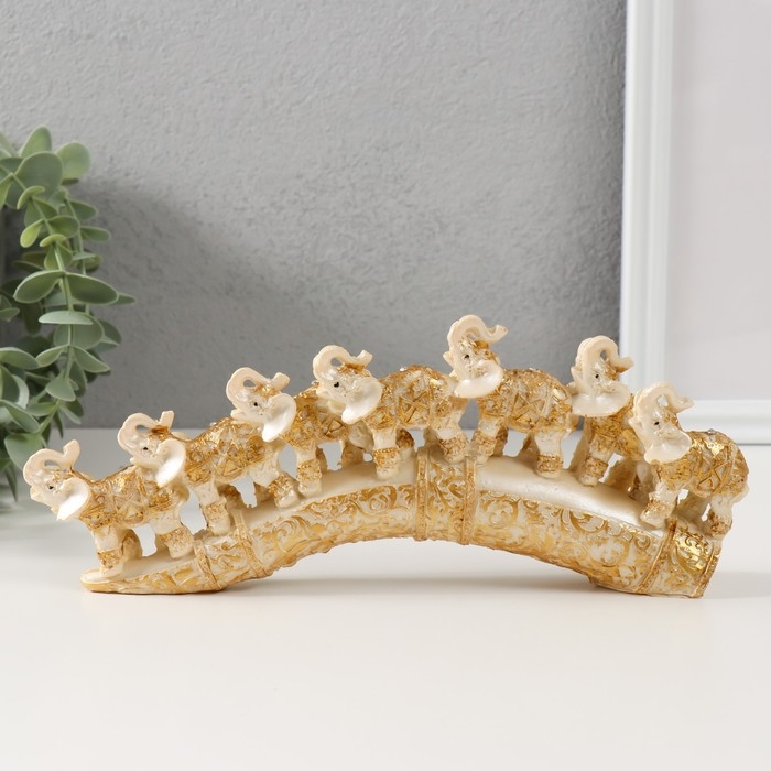 Сувенир полистоун "Семь слонов на бивне" резной 10х24х3,5 см