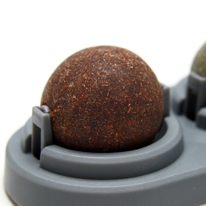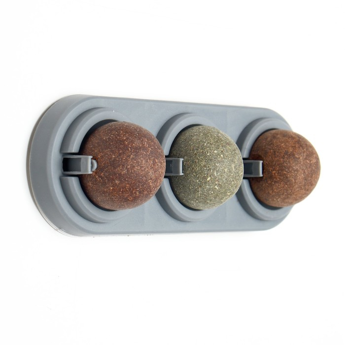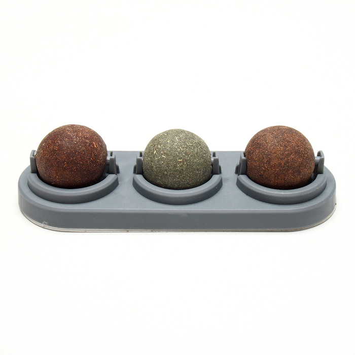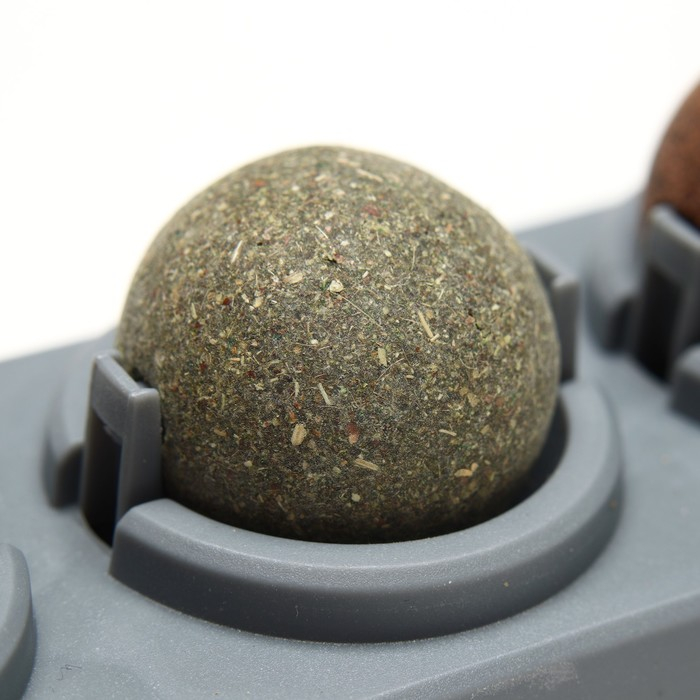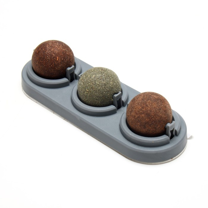 Игрушка для кошек из кошачьей мяты "Вращающиеся шарики" на основании,14 х 6 см, серая
