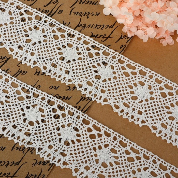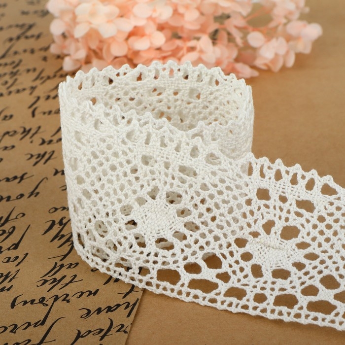 Кружево шитьё, 65 мм × 13 ± 1 м, цвет белый