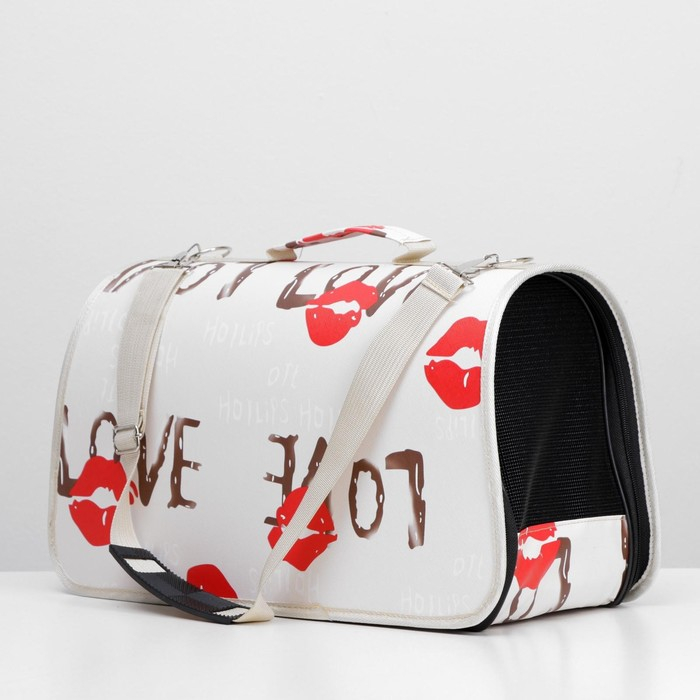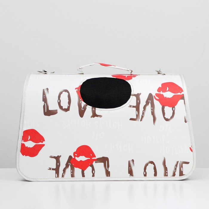 Сумка - переноска для животных "Love", размер М, белая, 45 х 21 х 27 см,