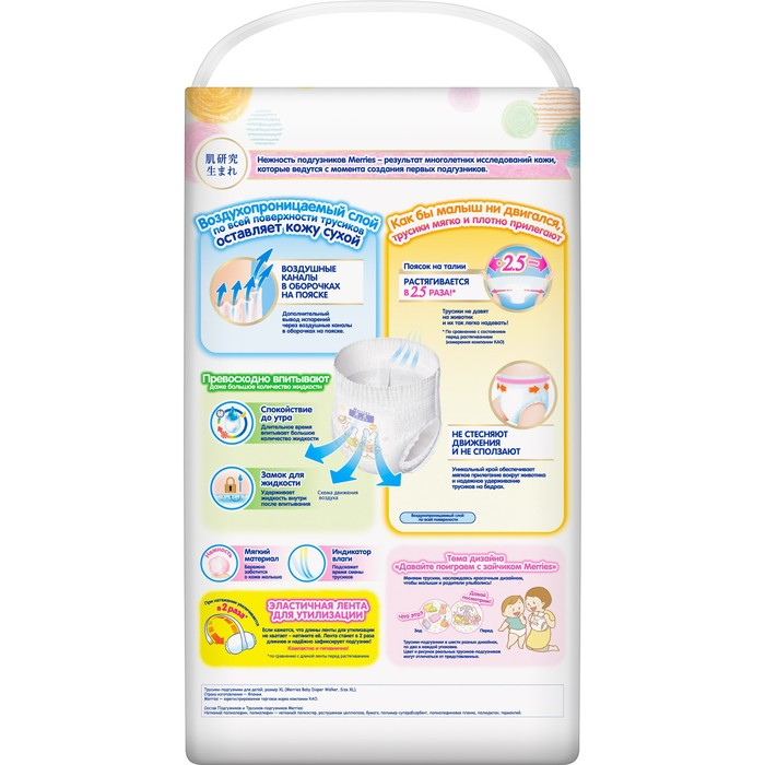 Подгузники-трусики Merries, размер XL (12-22 кг) 38 шт