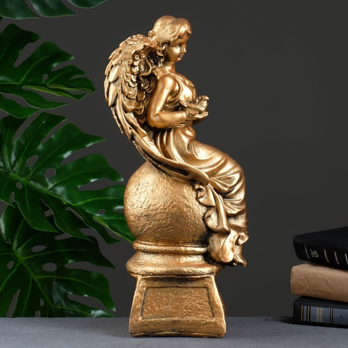 Фигура "Ангел девушка с птицей" бронза 19х19х43см