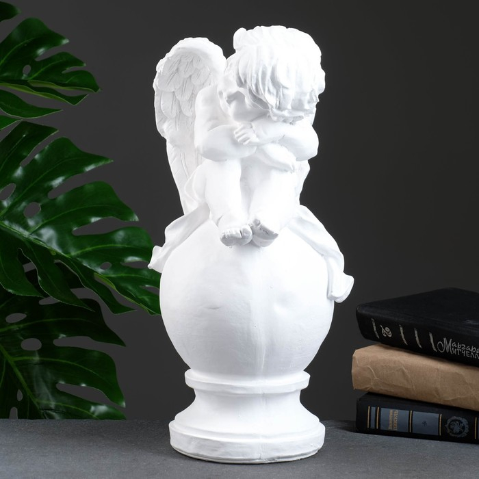 Фигура "Ангел спящий на шаре" белый 15х19х40см